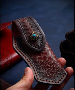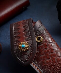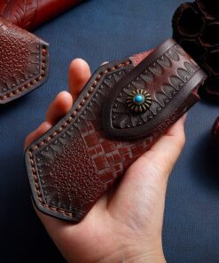 Sheath material: Genuine cowhide leather; brass; turquoise.