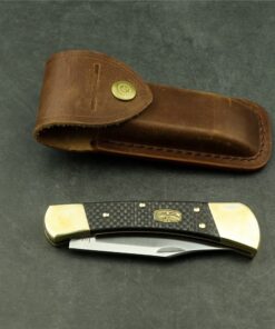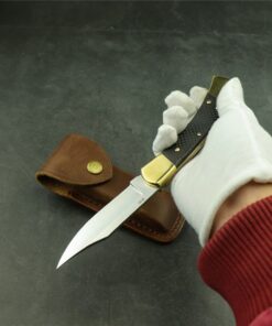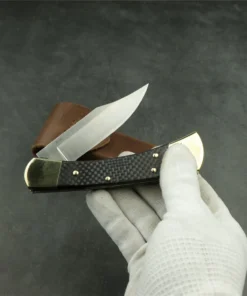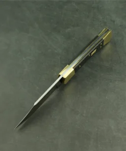 Constructed with a modern M390 steel folding blade, with characteristics of holding a lasting sharp edge, good blade & edge resilience, and excellent resistance against rusting. This blade folds back into the recess of a high quality carbon fiber & brass fittings handle.