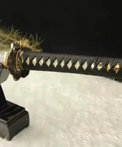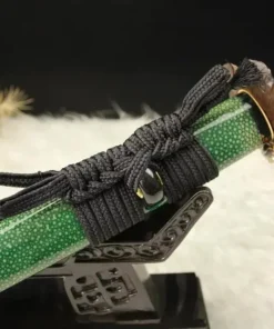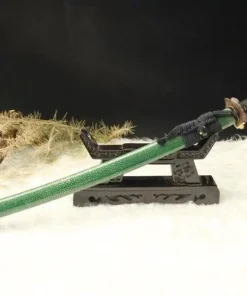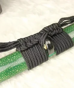 Equipped with an advanced Kobuse sword blade, a forge-welded laminate of hard 1095 steel and soft folded steel, which is a mixture of 1060 carbon steel, manganese spring steel, 1045 soft steel and many more smaller portions of other steels – repeatedly folded.