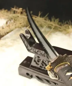 Prominently decorated with the frog, a powerful symbol of luck, but more importantly representing return of what’s cherished to the owner of the sword, which can include anything from homeland, clan, family to precious items, wealth and more.