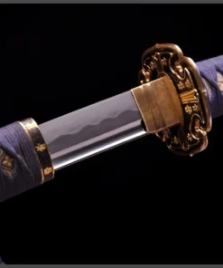 Completed with a lacquered hardwood scabbard, solid brass sword-fittings – with many decorations plated in real gold, and a hardwood, wrapped with real stingray-skin & quality cord handle, forming a traditional, practical and effective Japanese Samurai hand-grip.