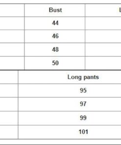 Thermal Underwear Specifications: