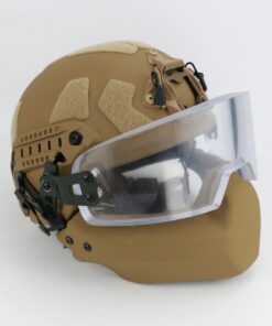 Commonly used in the civilian sphere of operations where lower caliber rounds are the primary threat, however still very much valuable for military use, protecting the head, jaw and eyes from shockwave and fragmentation, as well as lower caliber rounds.
