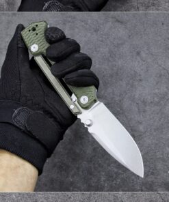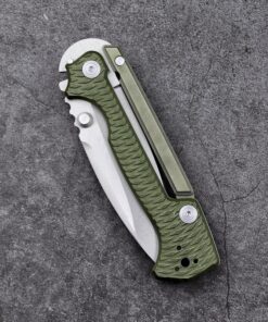 The construct is a modern S35VN steel folding blade, which holds a high carbon content ensuring a lasting sharp edge, combined with stainless steel and other alloyed metals promoting blade and edge resilience and resistance to corrosion. An almost indestructable combination G10 + heat treated aluminium handle house the blade within its recess, and form an effective grip hold.