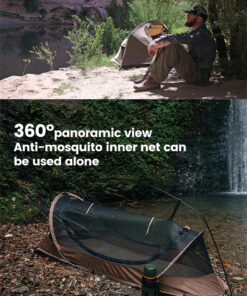 - Strong double zippers, bug netting and waterproof seam sealed – reliable entry points, guaranteed to keep insects and wet weather out.