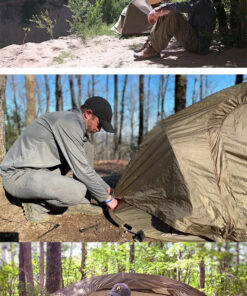 High versatility, something that a camouflage tent pattern could never accomplish. Furthermore, the low profile of this single man tent makes it about as easy to hide as a military bivy tent. Easily hidden and likely to go unnoticed even in grass fields and certainly tall grasses and shrubs, making this model a definitive stealth tent.