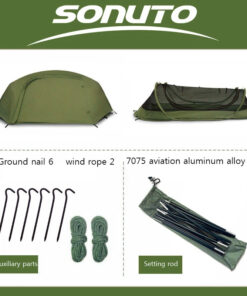 - Tent flysheet material: 210D tear resistant nylon – tape seam sealed (PU3500MM waterproof index).