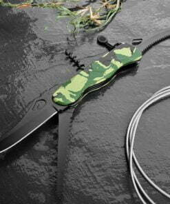 Camouflaged and positioned for vehicle crew survival behind enemy lines, this is an excellent army survival knife or bugout knife option.