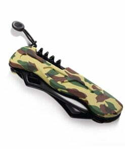 Tools incorporated: Knife; wood saw; serrated rope cutter; cork screw.