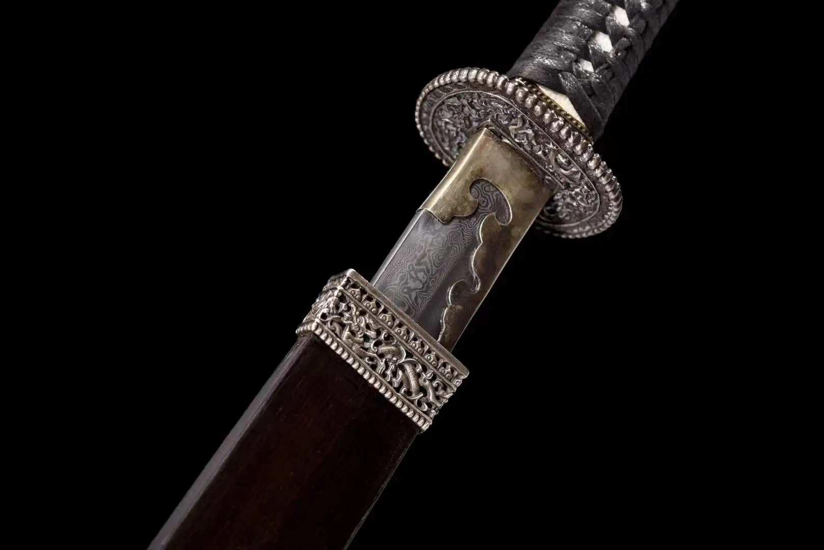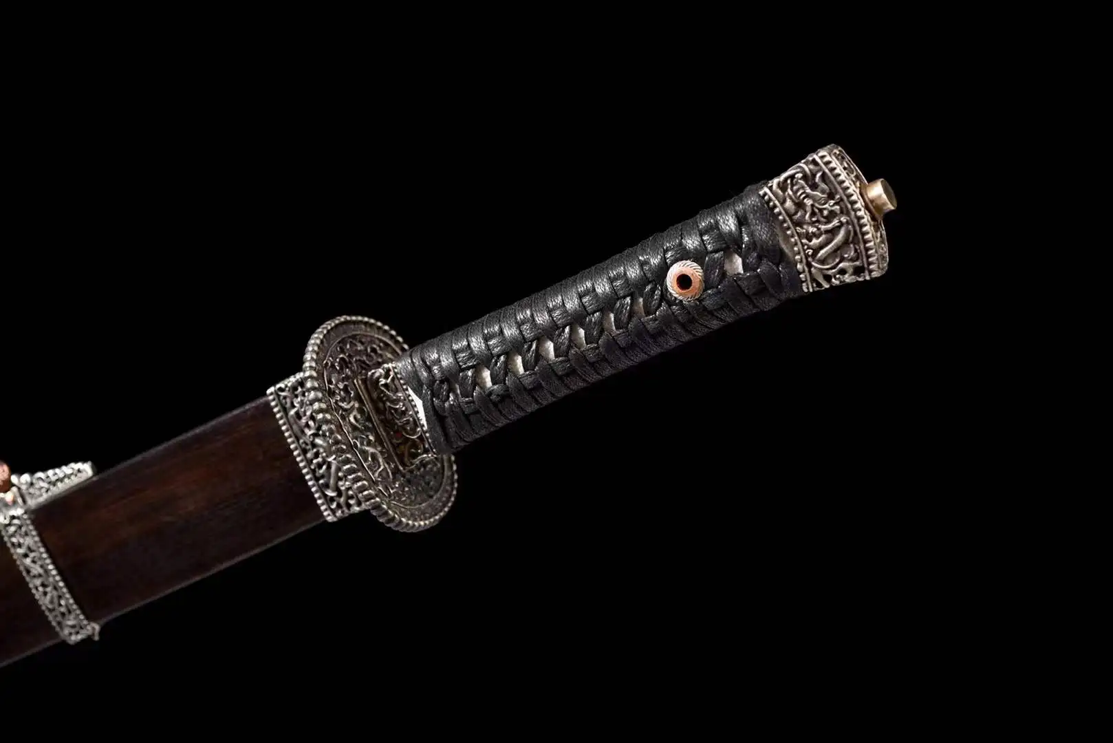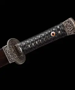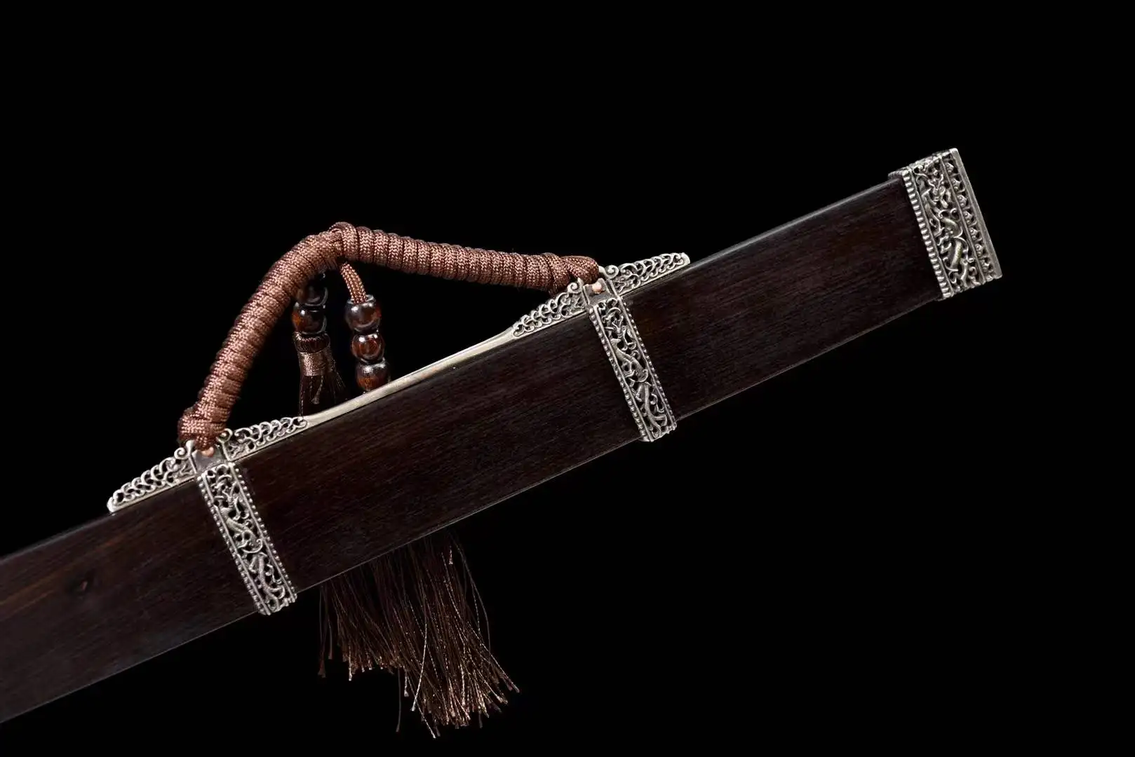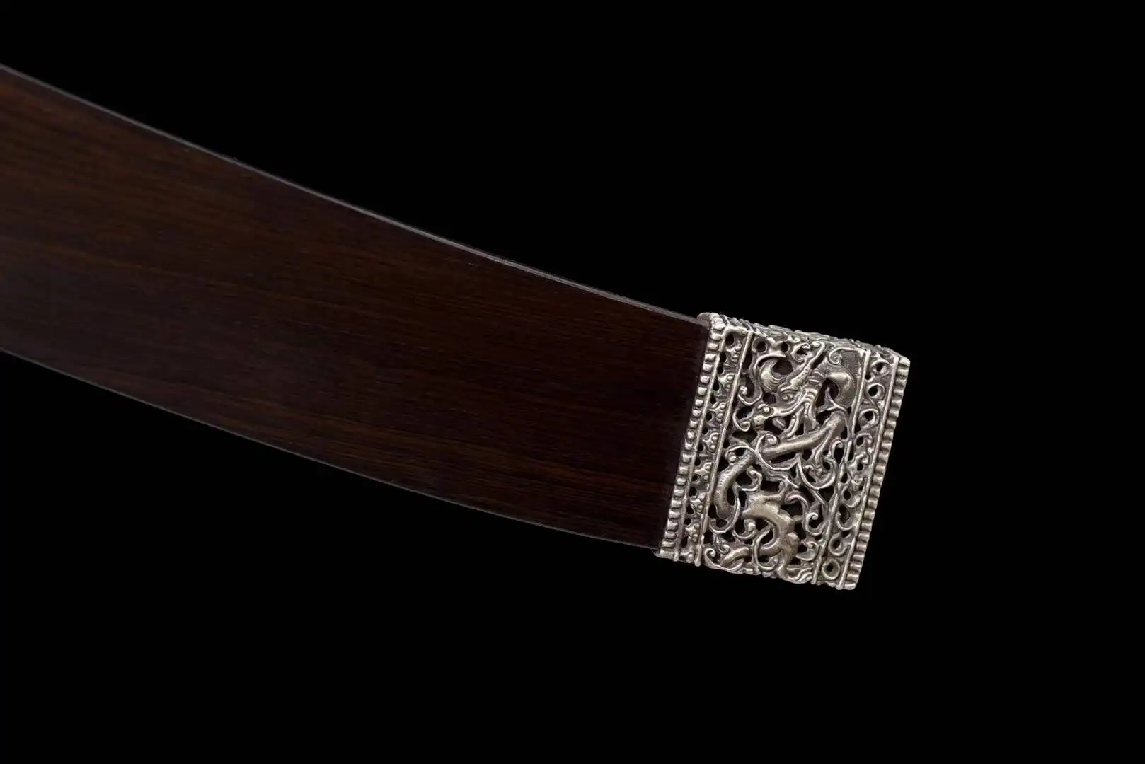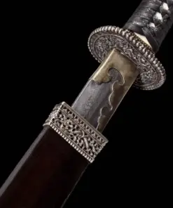 - Sacred sword – decorative and traditional Chinese sword with intricately illustrated white brass fittings.