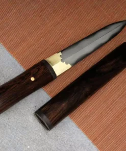 Completed with a solid Ebony hardwood Tanto sheath, quality brass Habaki, and a matching Ebony hardwood handle, forming a traditional, practical and effective hand-grip.