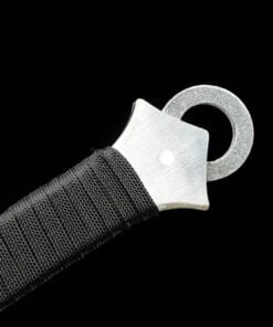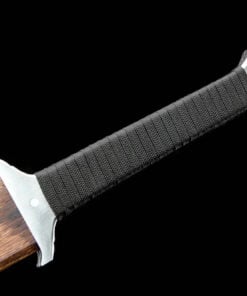 The full tang blade construct is a single forge of high Manganese steel (spring steel). This renowned steel has a high carbon content producing a hard and reliable battle edge, and the high Manganese content produces excellent resilience, ensuring the blade is not chipped or fractured even with violent clashes.