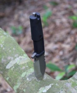A solid rubberised handle is bolted to the strong tang of the blade which forms a highly effective gripping surface, especially for a sweaty hand under the stresses of combat. The tactical knife is securely housed within a top quality Kydex knife sheath, so you can be sure of not losing your knife from the sheath while on the move.