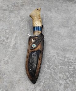 Housed in a genuine leather knife sheath, this model is perfect for anyone living in the woods or will make a strong wilderness survival knife.