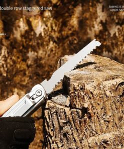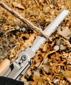 This simple and streamlined multifunction tool is handy for home utility, wilderness survival, camping and more. It can be used to salvage and strip wires, cut rope fast with a serrated knife blade, fashion complicated tools from wood and bone with a saw, and carve, twiddle and perform many fieldcraft tasks with a strong primary knife blade.