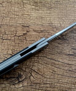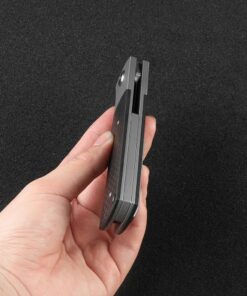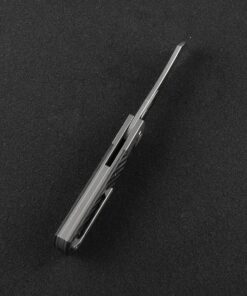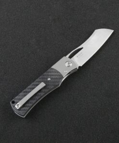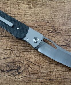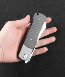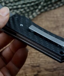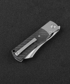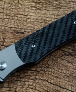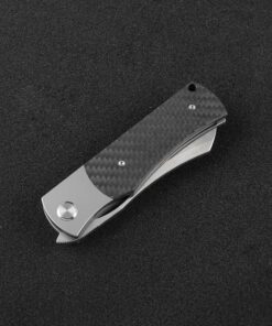 The folding knife construct consists of a modern 14C28N steel blade. This steel produces a hard blade with a lasting razor sharp cutting edge, excellent blade & edge resilience and resistance against rusting. The blade folds away into the recess of a premium titanium alloy + carbon fiber handle which is lightweight, very tough and designed to last a lifetime.