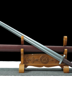 Equipped with a 1060 carbon steel sword blade, which is a modern, highly refined iron base-steel alloyed with 0.6% carbon, significant manganese, and traces amounts of other elements.
