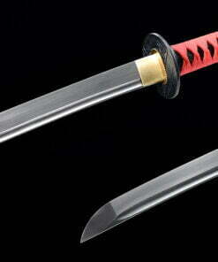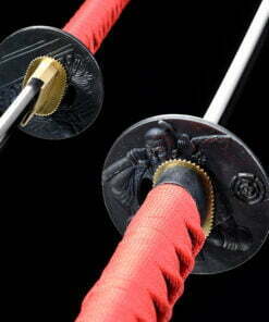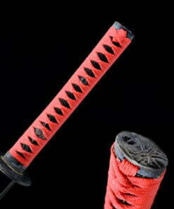 The black lacquered hardwood scabbard and quality sword fittings, complement the overall red Katana color scheme nicely. And the hardwood, wrapped with synthetic leather & quality polyester cord form a traditional sword aesthetic and a very effective Japanese Samurai handle grip.
