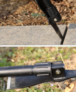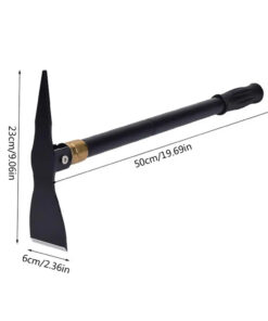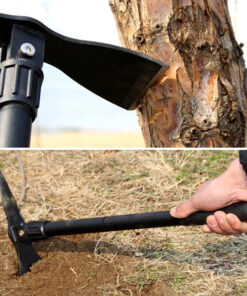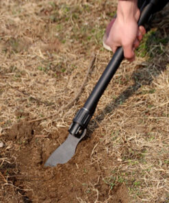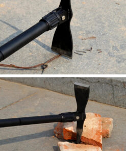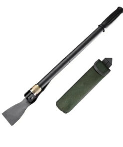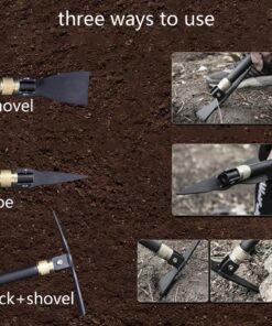 This hand pick can be unscrewed into two-halves for compact transport and when assembled for use, the tool can be transformed into a basic shovel or digging bar for shoveling earth, cutting roots and breaking up hard soils.