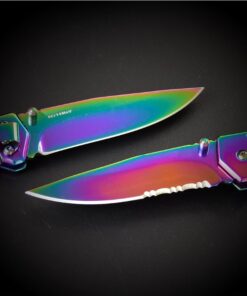 - Handle material: 2Cr13 stainless steel + rainbow colored titanium plating.