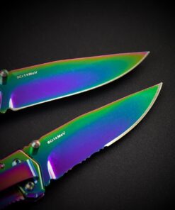 - 2Cr13 stainless steel + rainbow colored titanium plating handle – highly resistant to corrosion.