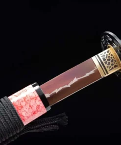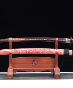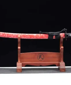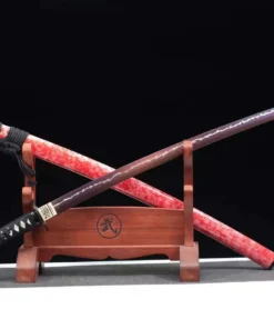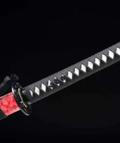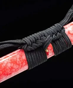 The beautiful, red & white lacquered hardwood scabbard and quality sword fittings, complements the red sword scheme well. And the hardwood, wrapped with synthetic leather & quality polyester cord form a traditional looking and very effective Japanese Samurai handle grip.