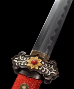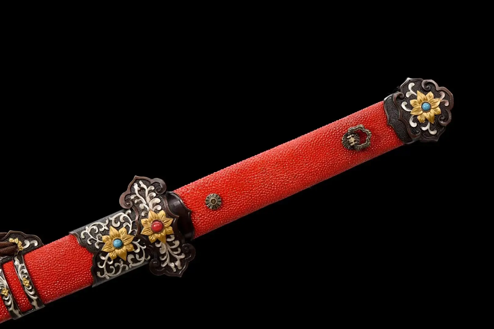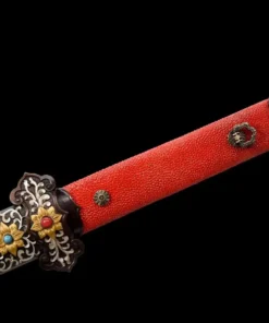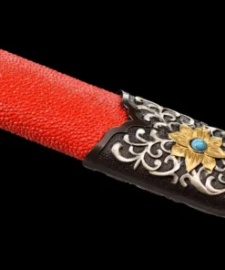 Completed with a hardwood wrapped with real stingray-skin scabbard, along with brass sword fittings – with many decorations plated in genuine silver & gold, and a hardwood, wrapped with real stingray-skin handle, forming a traditional, practical and effective hand-grip.