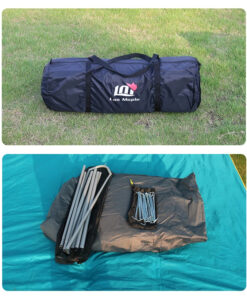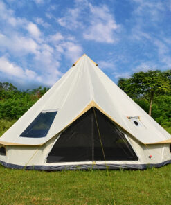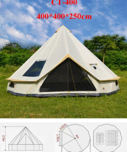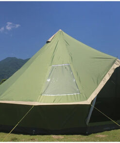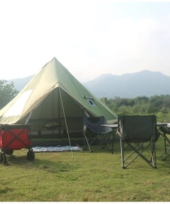 Primarily constructed with durable 300D oxford material, this heavy-duty and stout tent is extremely waterproof with a very high PU5000 rated index. The wear resistant groundsheet is guaranteed never to leak and the sloping pyramid tent design, as well as the thick steel tent stakes and strong wind-ropes, are designed to deflect and hold-fast even in strong winds.