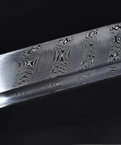 - Blade material: Folded Damascus steel sword blade.