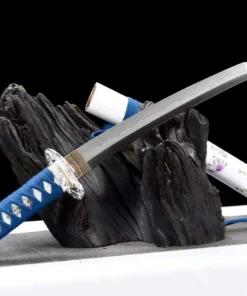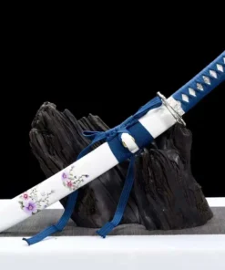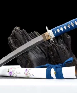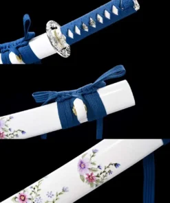- Saya (scabbard) material: Painted artwork and lacquered hardwood, wrapped with a quality-cord Sageo (scabbard-wrap).