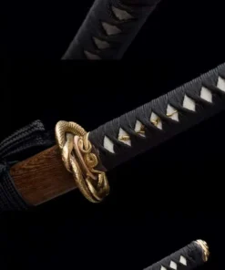 Completed with a natural rosewood scabbard, along with solid brass sword-fittings, and a hardwood, wrapped with genuine stingray-skin and quality cord handle, forming a traditional, practical and effective Japanese Samurai handle grip.