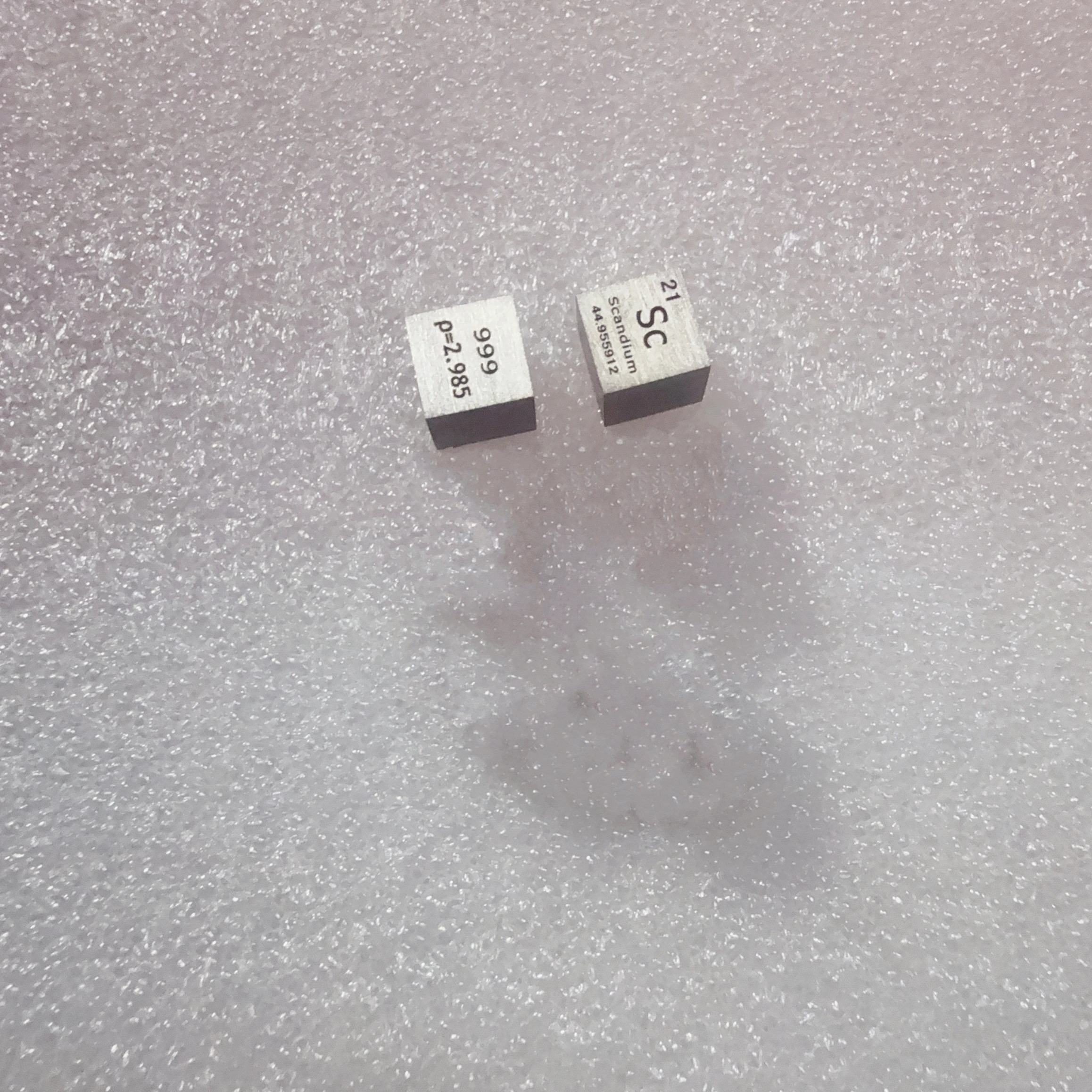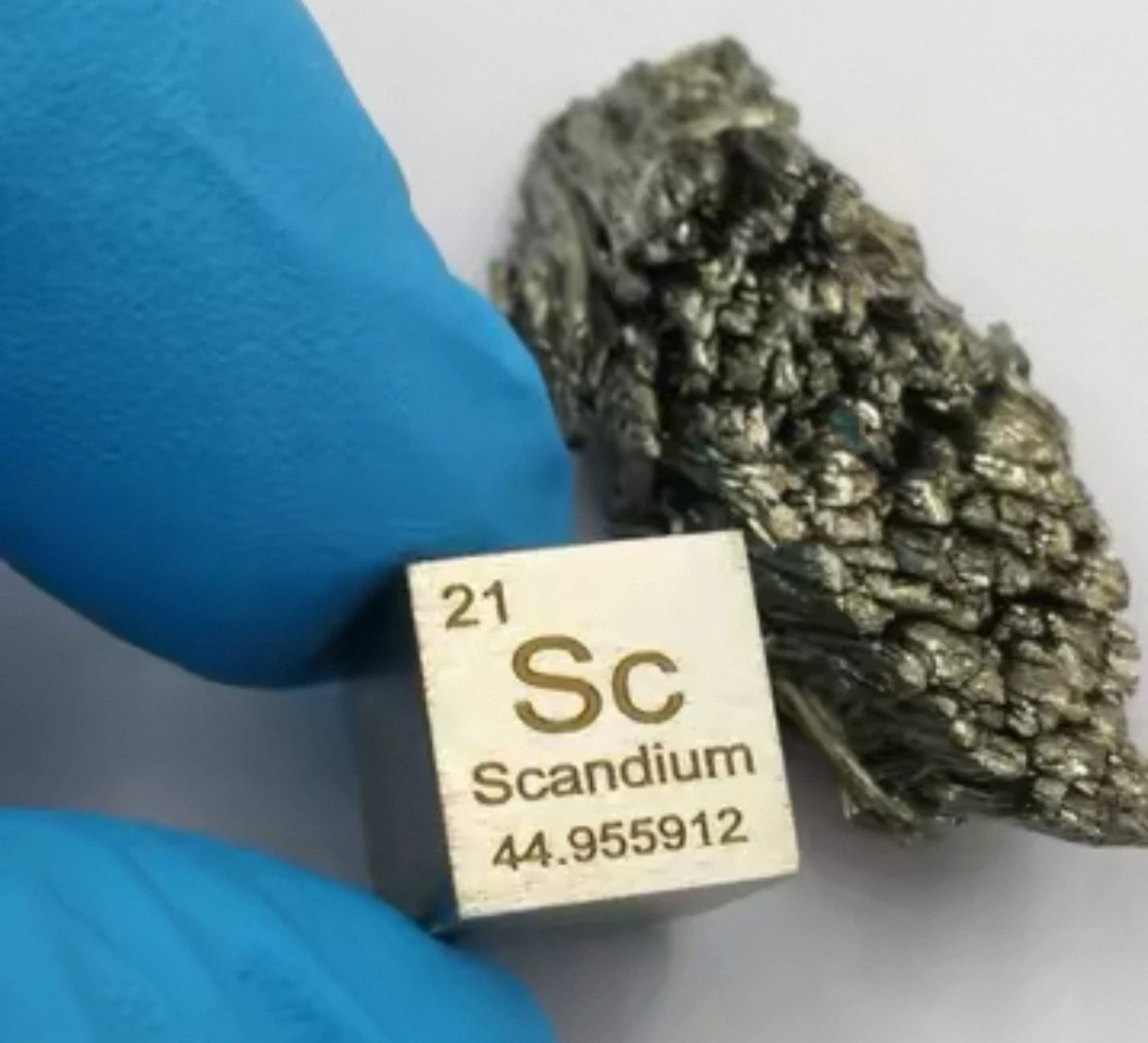 A pure scandium metal cube.