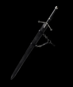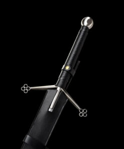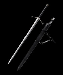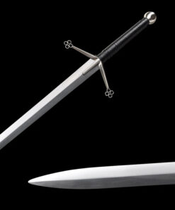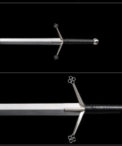 This weapon is designed to be used with both hands, and the double edged sword blade is perfectly balanced, poised not only as a formidable thrusting weapon, but equally effective for cutting attacks.