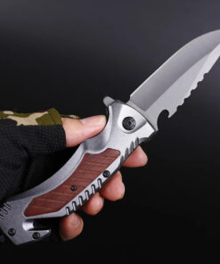 This lock blade knife is constructed with an advanced 9Cr18Mov steel blade. This modern steel promotes a blade with a hard enduring sharp edge, resilience against edge chipping, blade fracture and high resistance against corrosion.