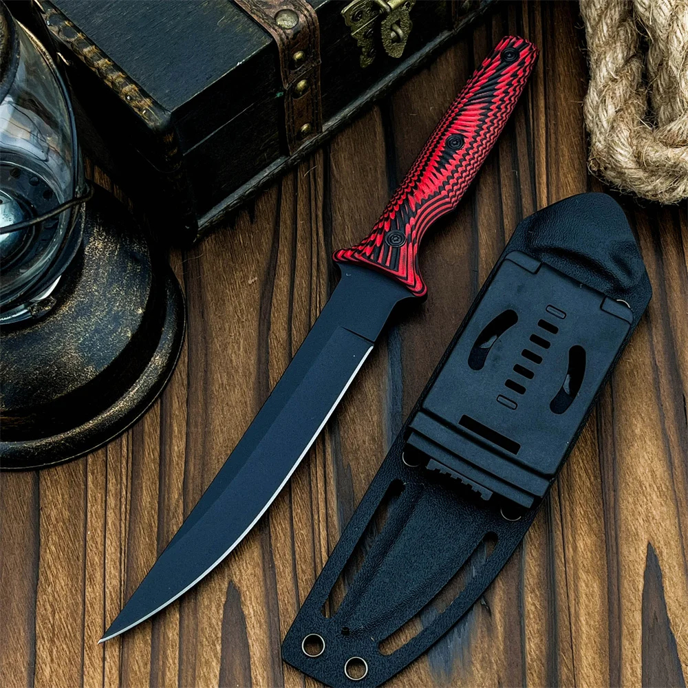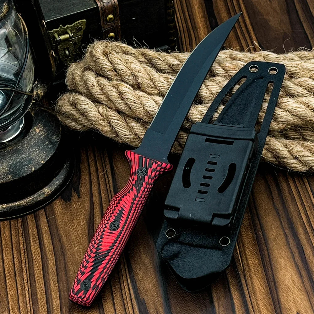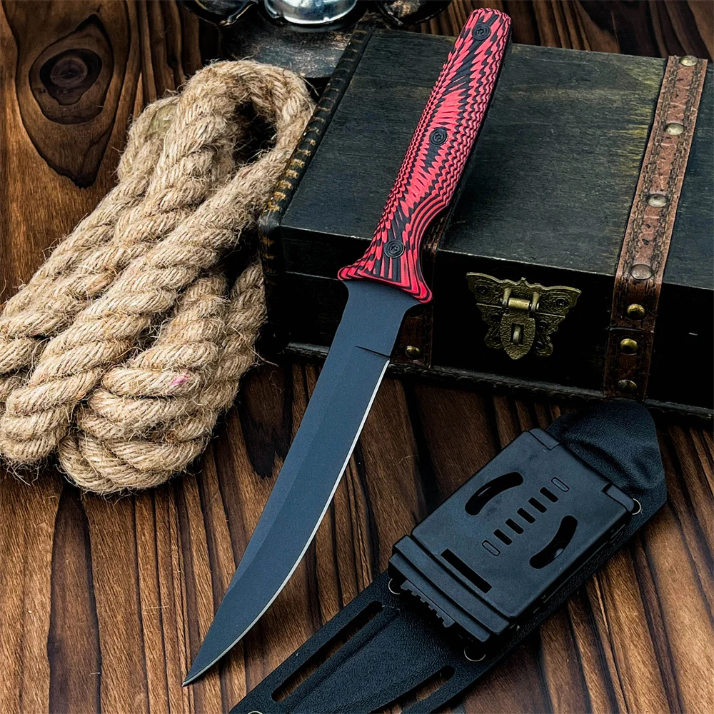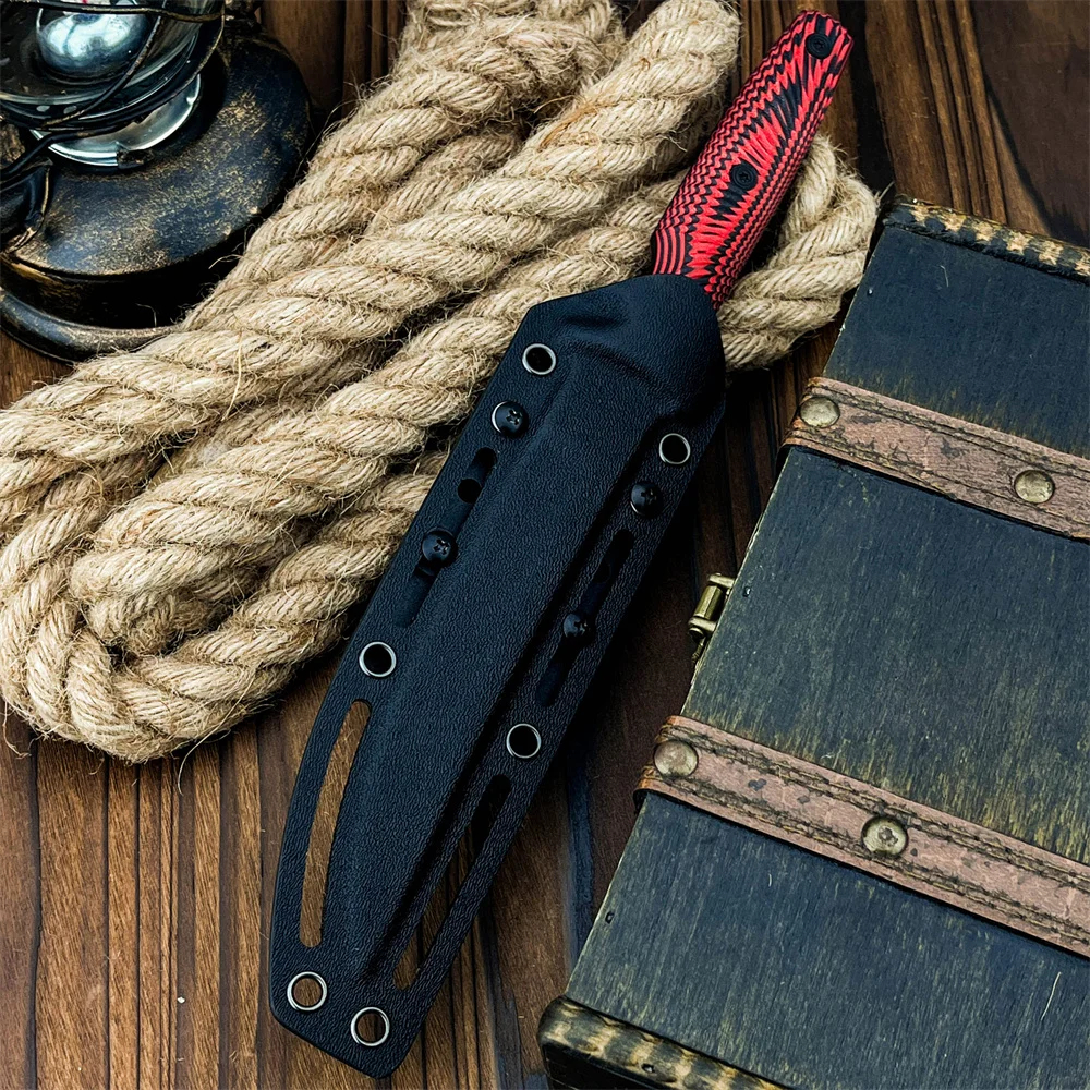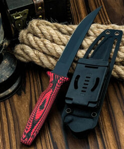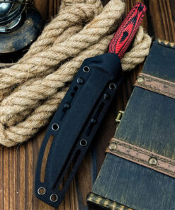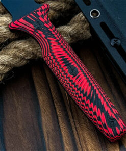Completed with a tough Kydex knife-sheath, and a modern G10 handle, which it bolted to the full tang with three strong steel fasteners, providing a reliable, and effective hand-grip.