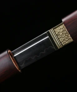 Equipped with a T10 steel sword blade, which is a modern, highly refined, iron base-steel alloyed with a high on average 1.0% carbon content, along with small amounts of tungsten, manganese and silicon.