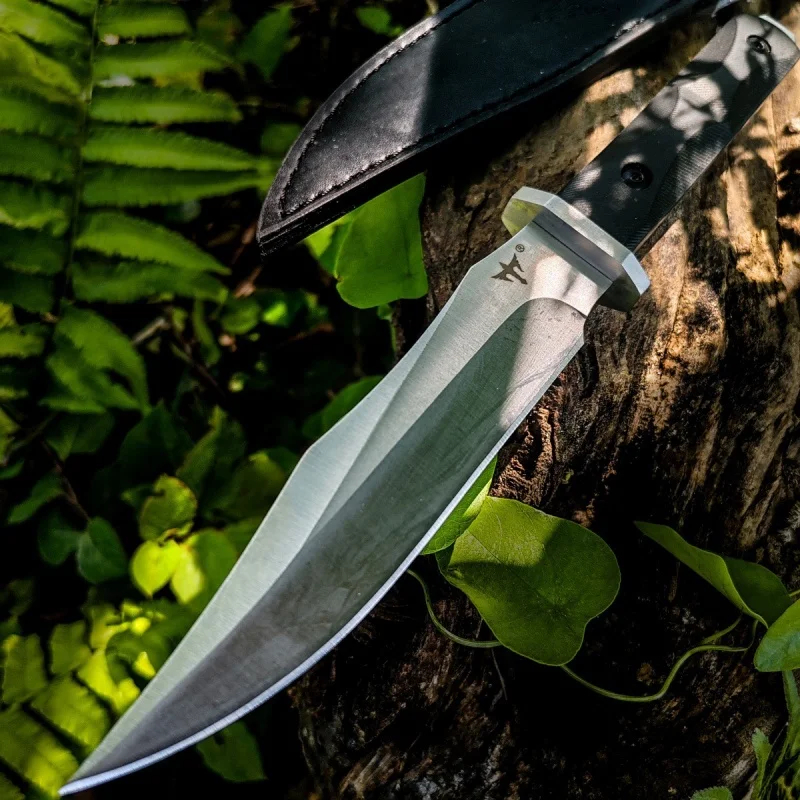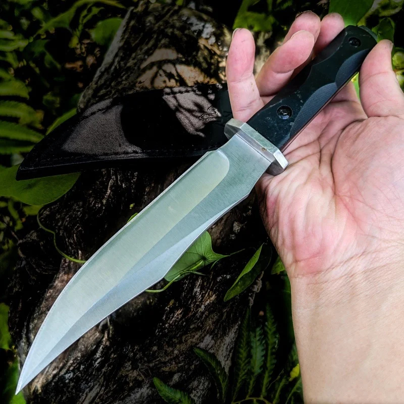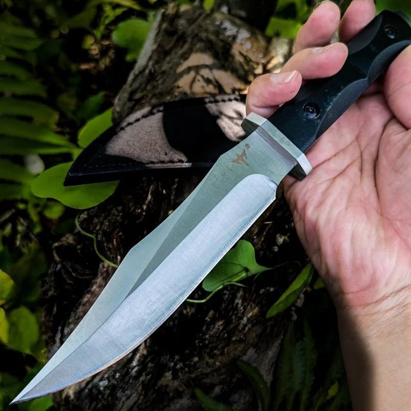 Completed with a tough, modern G10 handle, which is strong, durable and facilitates a reliable hand-grip. And included with a quality leather knife-scabbard which holsters the bush knife securely to a waist-belt.Â