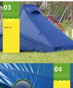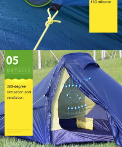 - Tent flysheet material: 15D anti-tear nylon + inside silicon coated – tape seam sealed (PU3000MM waterproof index).
