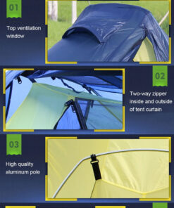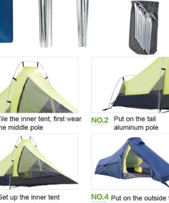 - Included: 1x inner tent; 1x fly sheet; aluminum tent stakes; folding aluminum poles; tent ropes; 1x tent carry bag.