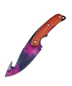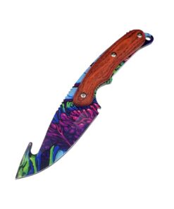 The blade is perfectly balanced for nifty work towards the tip and efficient power towards the rear fo the blade. The construct is a full tang forge of modern 5CR13MoV stainless steel, with a wood handle bolted to the full tang. This steel holds a lasting razor sharp edge and is extremely resistant to rusting. Additionally, the printed surface finish provides extra corrosion resistance, as well as a unique color scheme to your knife.