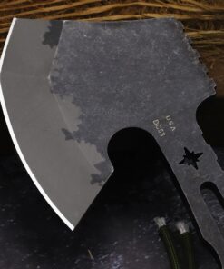 - Advanced DC53 full tang tomahawk – nothing to break or fall off from the axe, and one of the best modern steels used for construction.