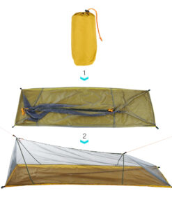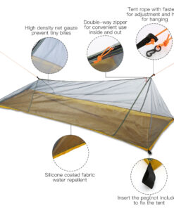 - Low profile coffin tent style – the short profile height of this mosquito tent for camping makes it less affected by winds, gusting rain and is easy to hide, even in long grass.