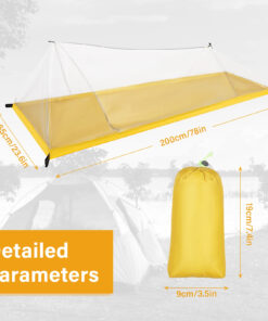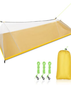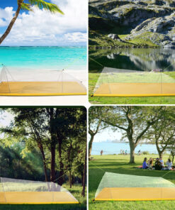 - Included: 1x portable mosquito net; 2x tent ropes; 1x storage bag (NO tent pegs are included).