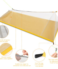 - Best trekking pole tent mosquito net – no poles needed, as long as you have two hiking poles, two trees or even your bicycle frame in order to tighten the two tent wind-ropes.