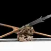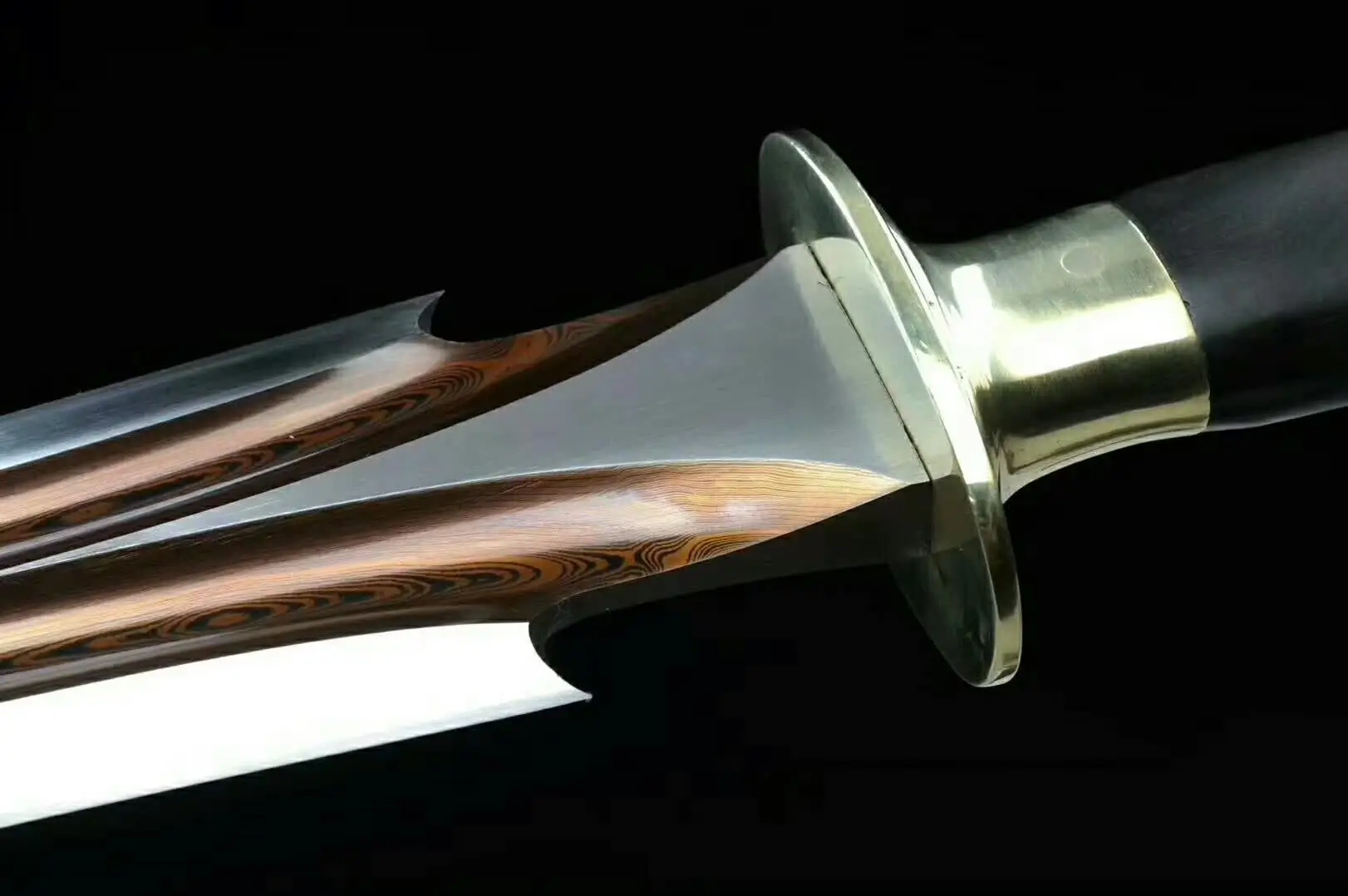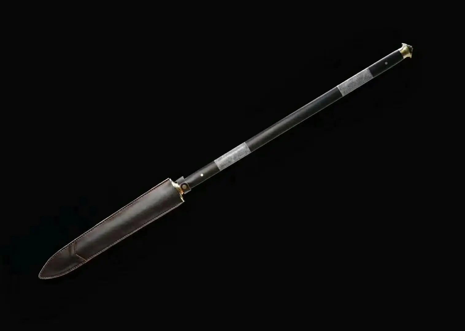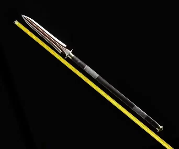 - Spear blade material: Folded steel spear head – red electroplated blade core.