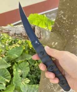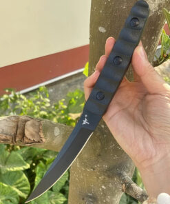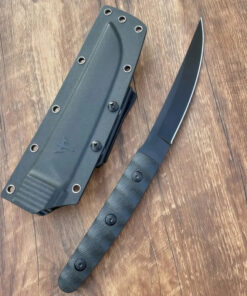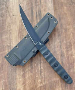 Completed with a tough Kydex knife-sheath, and a modern G10 handle, which it bolted to the full tang with three strong steel fixings, providing a reliable, and effective hand-grip.