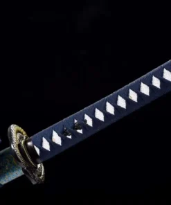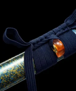 The beautiful, multi-color speckled, lacquered hardwood scabbard and quality sword fittings, complement the blue Katana scheme well. And the hardwood, wrapped with synthetic leather & quality polyester cord form a traditional looking and very effective Japanese Samurai handle grip.