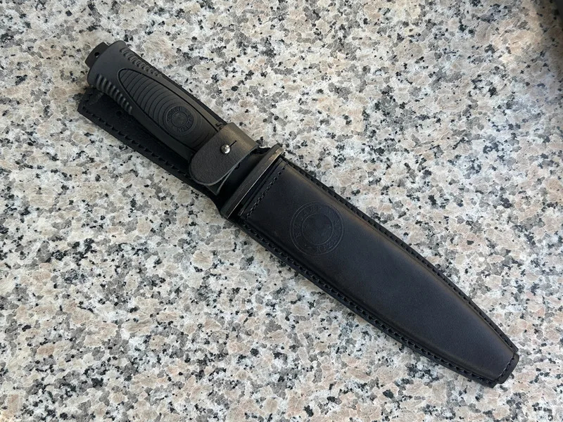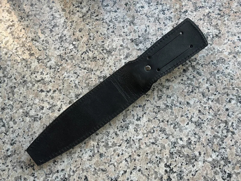 - Knife sheath material: Genuine leather outer, with plastic inner.