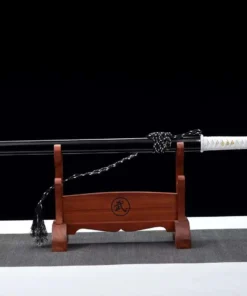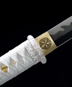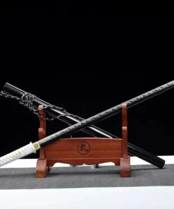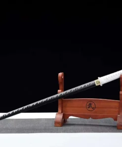 A simple, clean & deadly spring steel sword, with a black and white color scheme.