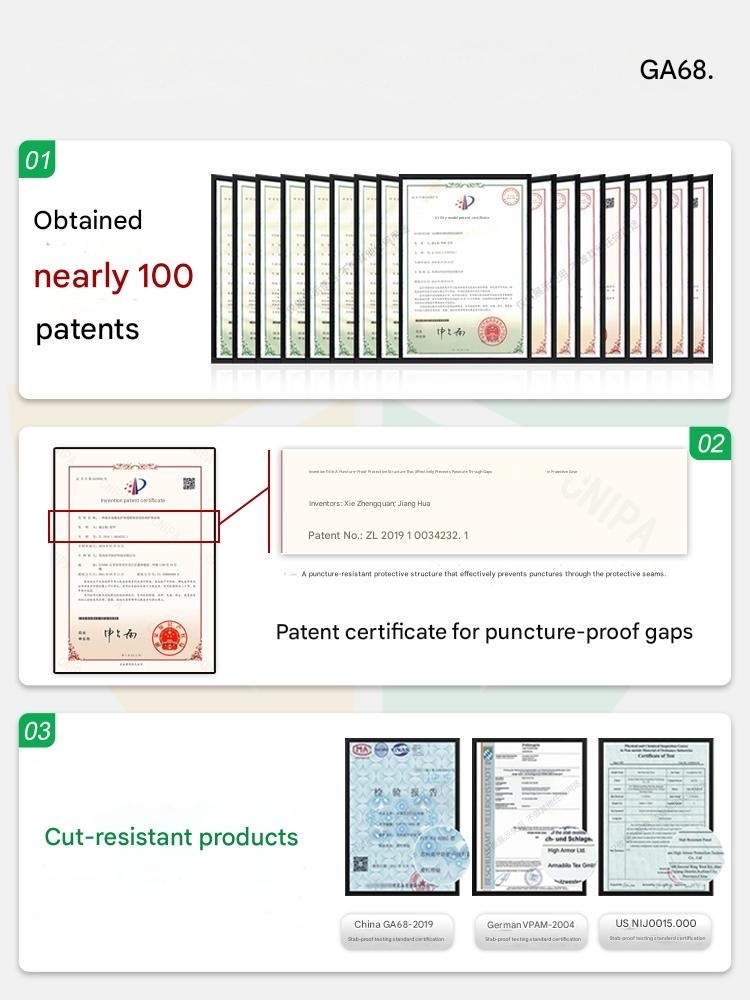 - Stab-proof materials: Black carbon fibre composite + white carbon fibre.